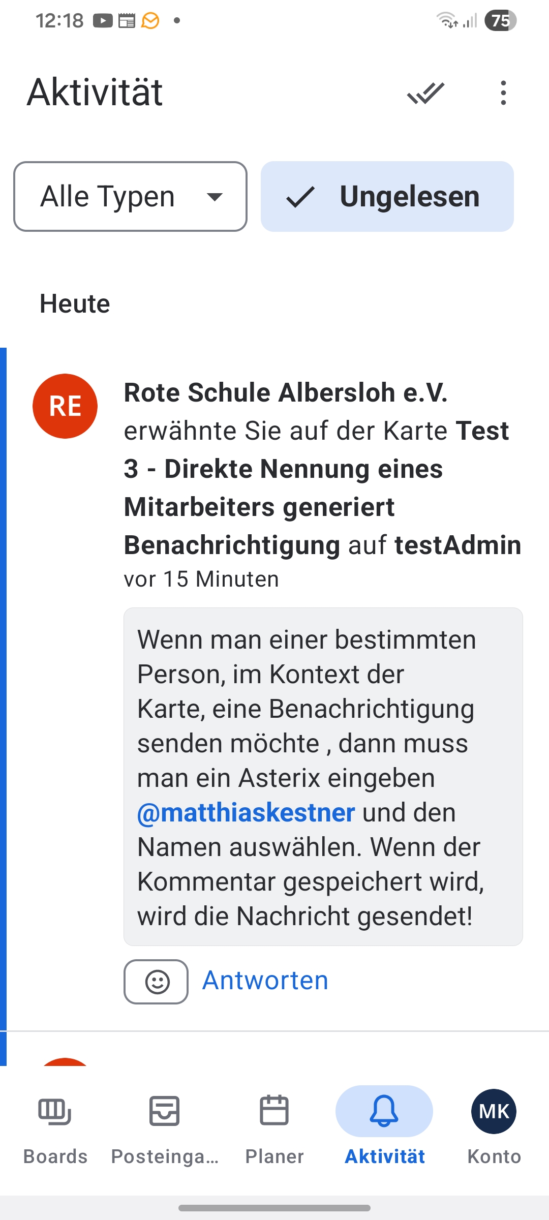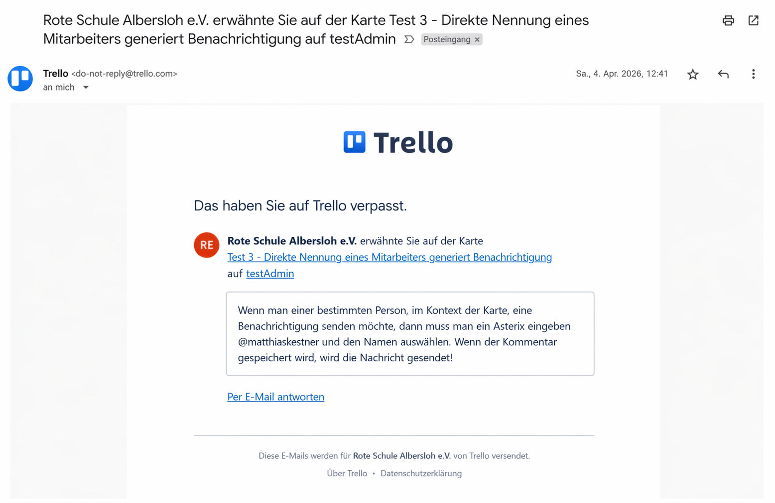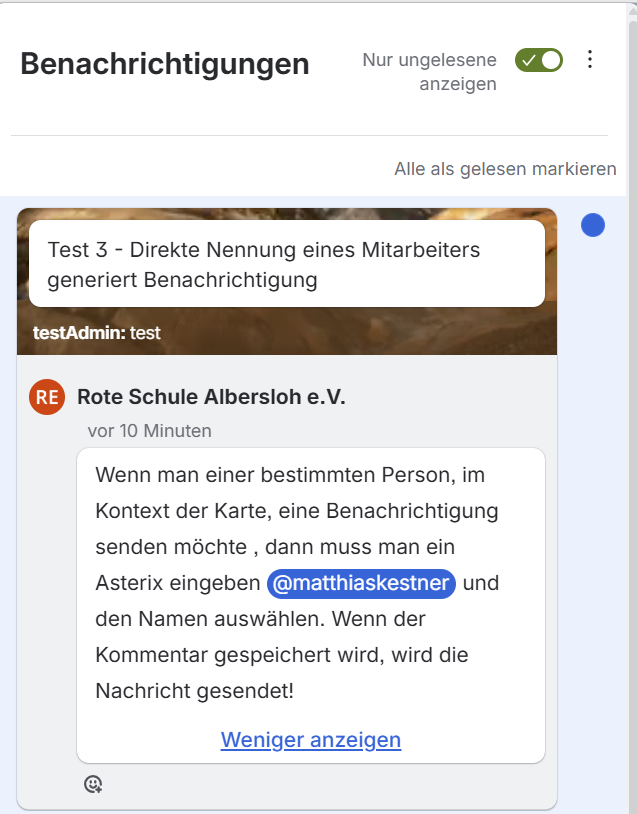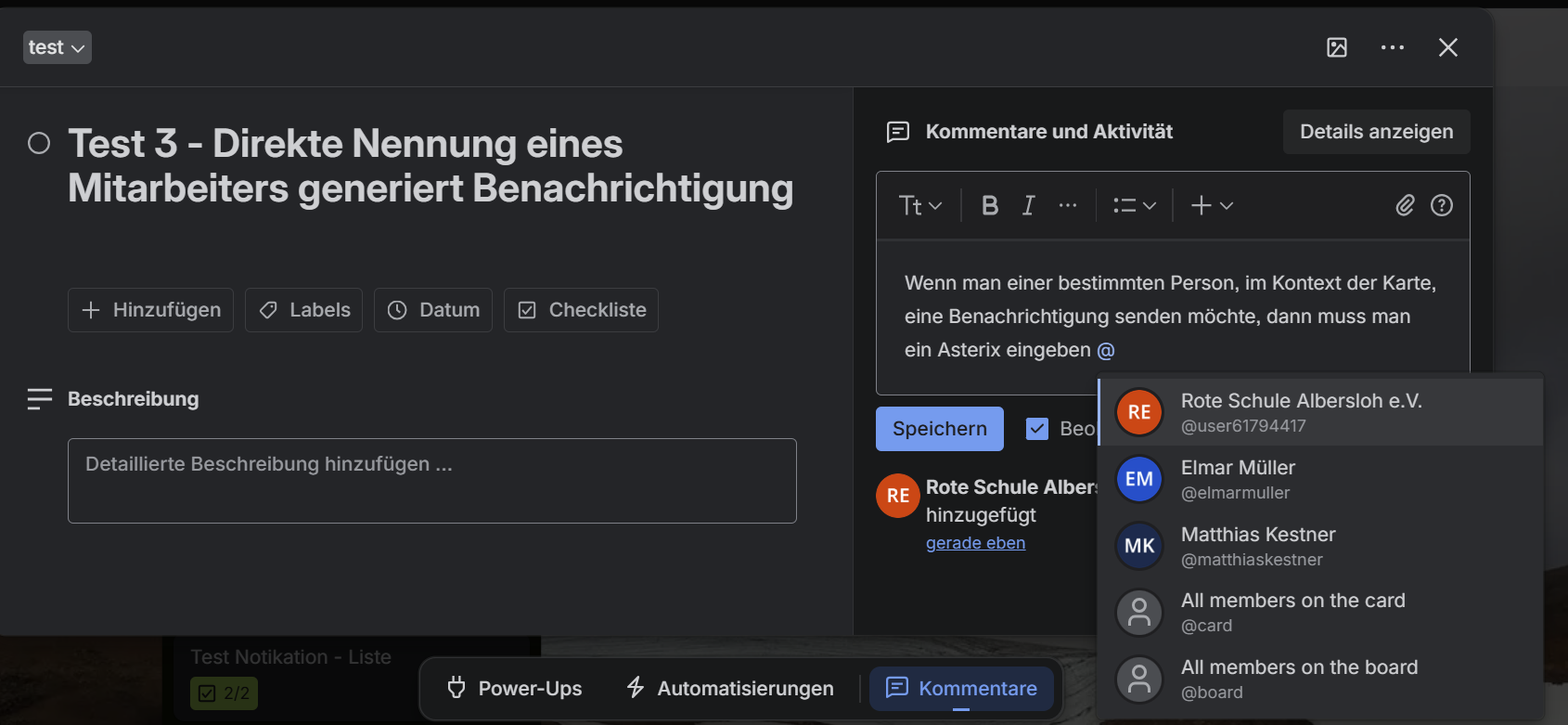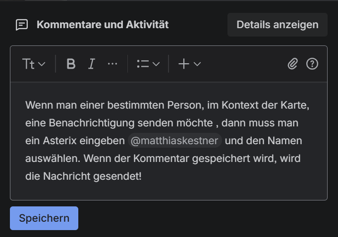 Diese Art der Benachrichtigung funktioniert nur in Kommentaren einer Karte.